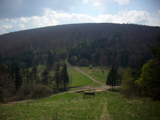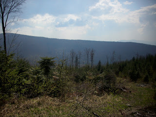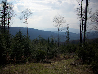 Wyprawa ta planowana była przeze mnie od zeszłego roku, kiedy to zdobyłem tylko Kamiennik Południowy. Wtedy góra ta wydawała mi się nijaka i nieciekawa. Jednak głębsze studia na ten temat rzuciły nowe światło na to pasmo. Głównym celem tej wyprawy był stary kamieniołom "Pod Piekłem" i jaskinia "Pod Zębem". Podróż rozpocząłem ok. godziny 10.00, przy niezbyt dobrze rokującej pogodzie. Jednak po tym jak zostawiłem za sobą Kamionkę pogoda zaczęła robić się coraz lepsza. Po wyprodukowaniu przeze mnie drewnianych kijków ruszyłem przez malowniczy szlak z Lubnia, poprzez piękne, widokowe polany nad przysiółkiem Łopusze, na Łysinę. Słońce już grzało ostro, ale widoczność niezbyt dobra (średni pułap chmur). Na Trzech Kopcach krótki odpoczynek i na Łysinę. Parę fotek i dalej szlakiem na Suchą Polanę. Na Suchej rekonesans, odkrycie źródełka i spotkanie z konnym jeźdźcem. Następnym celem był pierwszy ze szczytów Kamiennika - Południowy. Szczyt nijaki, tylko jakieś kamienne bożki . Jednak w drodze na północny szczyt mijam polany, przesieki i młodniki skąd rozciąga się widok na Pasmo Łysiny, Beskid Makowski i Żywiecki. Sesja zdjęciowa i na szczyt. Na szczycie odpoczynek i zdjęcia pośród głazów i wychodni skalnych. Gorąco, ale widoczność wspaniała. Po około godzinie ruszam szlakiem na Porębę, w stronę kamieniołomu. Po chwili oczom mym ukazuje się jedno z najlepszych (wg. mnie) miejsc widokowych w mojej okolicy. Tego się nie da opisać, a zdjęcia nigdy nie oddadzą tego co na żywo widzą oczy. Sesja w kamieniołomie i kieruję się w stronę jaskini. "Jaskinia" okazuje się zwykłą szczeliną (Zimna Dziura to gigant przy tym czymś ) Nic, trzeba wracać. Miałem wśiąść do busa w Porębie, jednak widoki ciągną mnie z powrotem. Wracam tędy skąd przyszedłem . Piękne widoczki, żal wracać. W końcu docieram na Suchą Przełęcz/Polanę i w altance zbieram siły na najgorszy odcinek - z Suchej na Łysinę. Po pokonaniu "Golgoty" bezproblemowo wracam żółtym szlakiem. Jakby w nagrodę ukazują mi się Tatry. Coś pięknego! Po drodze spotykam jeszcze jelonka i na 19.00 jestem w domu.
