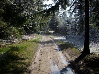Nie mogąc wybrać się w sobotę na zlot na Gibasach musiałem sobie to jakoś odbić. A że nie było dużo czasu i pogoda nie ciekawa, padło po raz kolejny na Szczebel. Jednak na czarnym szlaku zdarłem już nie jedne podeszwy, więc wybrałem drogę na szczyt bez żadnego szlaku, poprzez chaszcze i las. Rano pogoda jakby miało cały dzień lać, mokro i zimno. Jednak im godzin przybywało, tym robiło się cieplej i słoneczko zaczęło się pokazywać. W drodze na szczyt nie spotkałem żywego ducha, oprócz złodziei drzewa i dwóch jeleni. Po wejściu na czarny szlak od razu wpadłem na dwóch turystów, dwa krossy i quada. Na szczycie pogoda wspaniała, tak że postanawiam zrobić dłuższy popas. Po godzinie idę czarnym szlakiem w stronę Lubogoszczy, na skałki. Szperanie, przeszukiwanie i robienie zdjęć trwa około godziny i ruszam z powrotem na szczyt i znowu popas. Po chwili dochodzi małżeństwo z dwójką dzieci. "To jest Szczebel" mówi tata, "Tutaj możesz sobie stanąć to ci zrobię zdjęcie". A synek "To tylko po to tu przychodziliśmy?!" Na chwilę zatrzymuje się na nowo "wybudowanym" miejscu skąd startują paralotnie i sesja zdjęciowa. Po drodze do domu na Małym Szczeblu spotykam znajomego wypychającego rower na szczyt. Chwilka rozmowy i dalej w drogę. Po telefonie od Mirka, czekam na niego niedaleko kładki na Rabie i wspólnie spożywamy po Kasztelanie. Słońce grzeje tak, że nie da się wytrzymać, więc się zbieramy i do domu.