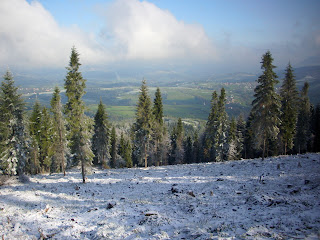 Kolejna wyprawa z dnia na dzień. Po wieczornych opadach śniegu wiedziałem, że Luboń to będzie to. Pobudka 6.30 i RAB-Bus'em do Naprawy. Tam wita mnie śnieg po kostki. Z przystanku ruszam niebieskim szlakiem na Luboń Mały, gdzie spędzam ok. 30 minut na robieniu zdjęć w miejscu wycinki. W końcu zima w maju jest ciekawa . Po sesji zdjęciowej ruszam w dalszą drogę. Błoto, śnieg i lód. Na polanie Surówki ledwo widać Rabkę i kawałek Gorców. Ok. 9.30 jestem pod schroniskiem. Widoczność lepsza, ale zawsze mogło być lepiej. Śniadanie z pięknymi widokami i nie wpadając do schroniska ide czerwonym na Glisne. Ciekawe było to zejście. Parę prawie-wywrotek i cały w błocie jestem na przełęczy. Dalej zielonym szlakiem na Szczebel i pożegnalne spojrzenie wstecz, na Luboń. Ok. 11.30 jem drugie śniadanie na Szczeblu. Niestety o Tatrach, które były tak blisko w marcu, nie mam co marzyć. Pod szczytem miejsce widokowe i sesyjka. Później zejście i im bardziej w dół tym bardziej zielono się robi. W końcu wita mnie zieleń i ciepło słońca. Ogólnie fajna wycieczka, pierwszy raz takie warunki w maju.